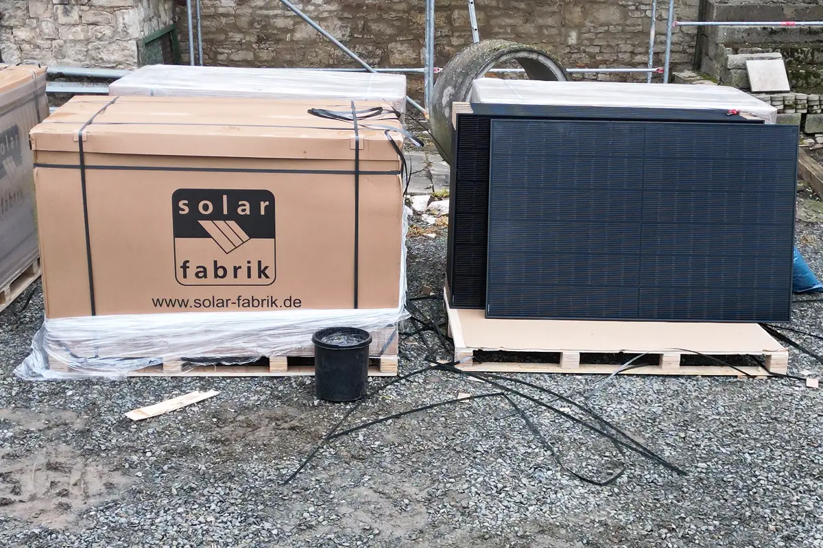 Auf 440 m² erzeugen wir mit 220 Mono S4 Trend Full Black 450 W Modulen 99 kWp Strom – effizient, zuverlässig und dezent in das historische Umfeld integriert. Unter der Oberfläche wurde besonders sorgfältig gearbeitet, archäologische Aufsicht sorgte dafür, dass Geschichte und Technik perfekt Hand in Hand gehen.